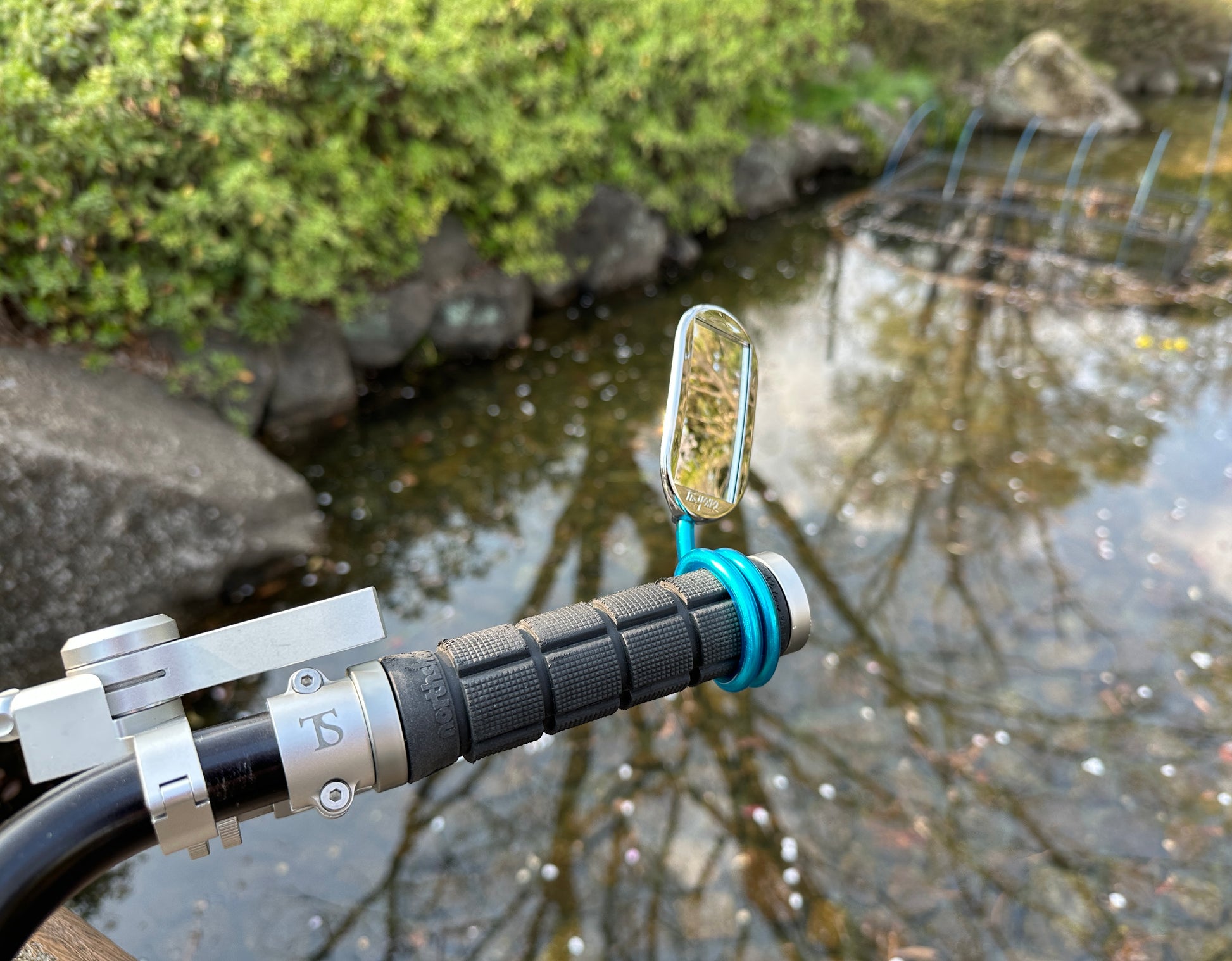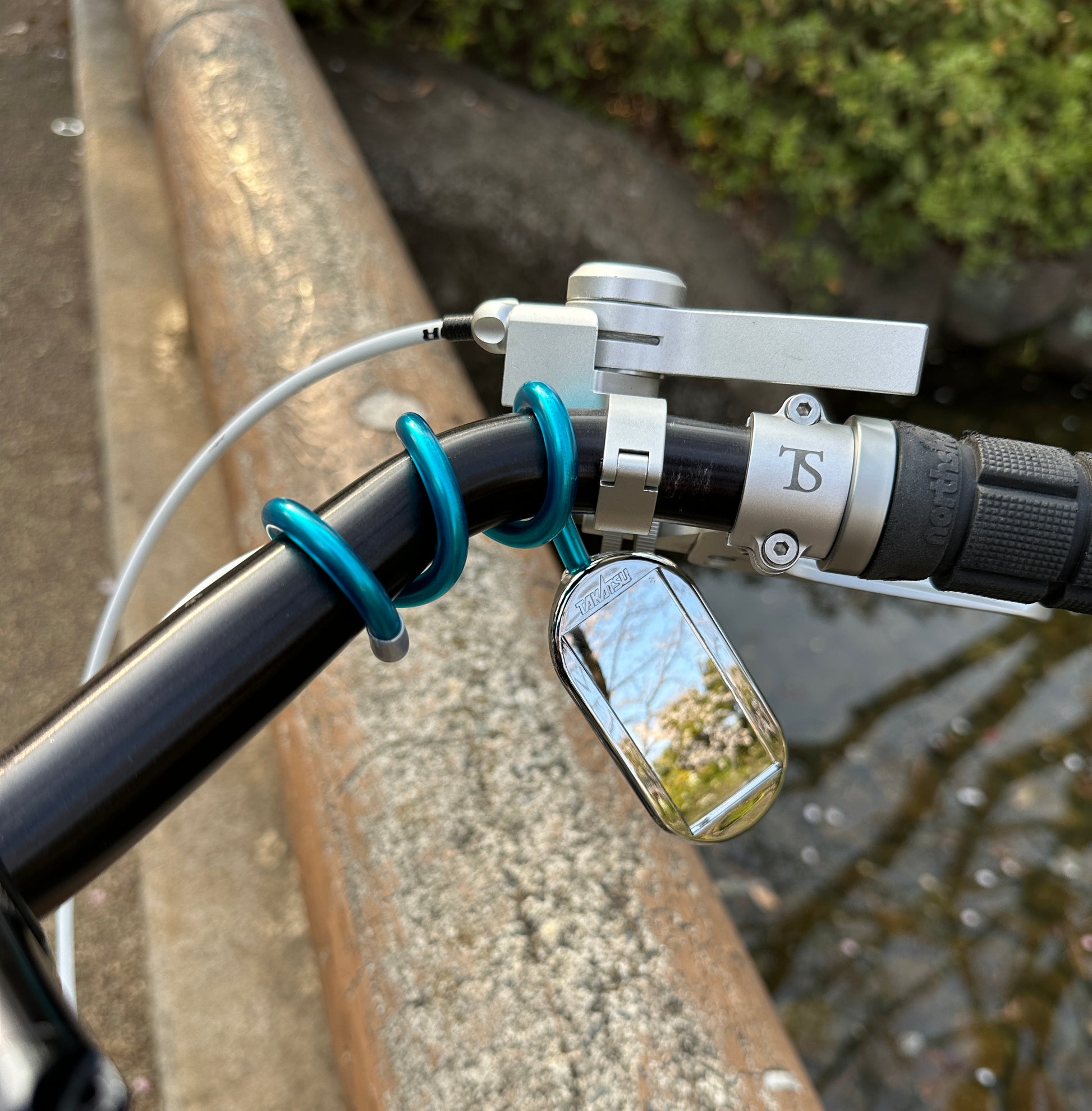二輪ですと風圧でなかなか使用が厳しい場合もあるのですが、自転車、特にエブリイデイバイクには最適です。ハンドルや、グリップ部分に巻き付けてご使用ください。ハンドル径を選ばずにフラット、ドロップの双方にも使用可能です。巻きつける部分が広いほど固定力が安定します。